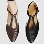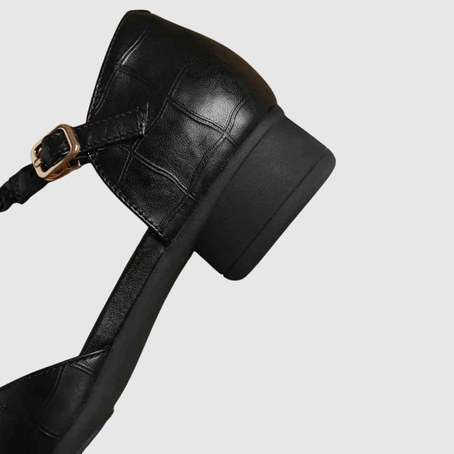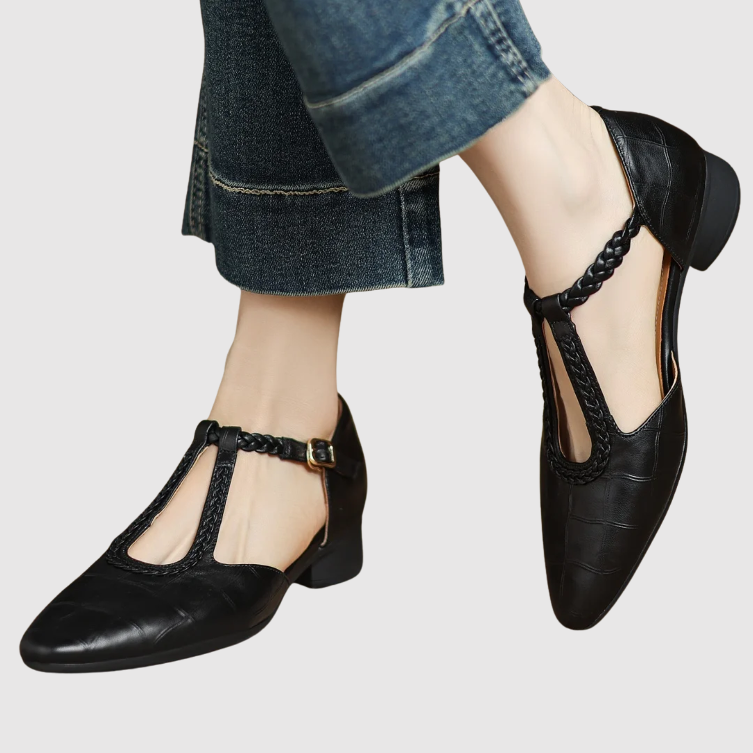 Tyto boty s charakteristickým T-páskem kombinují styl a pohodlí v dokonalé harmonii. Vyrobeny z vysoce kvalitní ekologické kůže, udržují nohu stabilní, zatímco měkká podrážka zajišťuje komfort po celý den. Jsou ideální jak do kanceláře, tak pro každodenní vzhled s nádechem elegance.