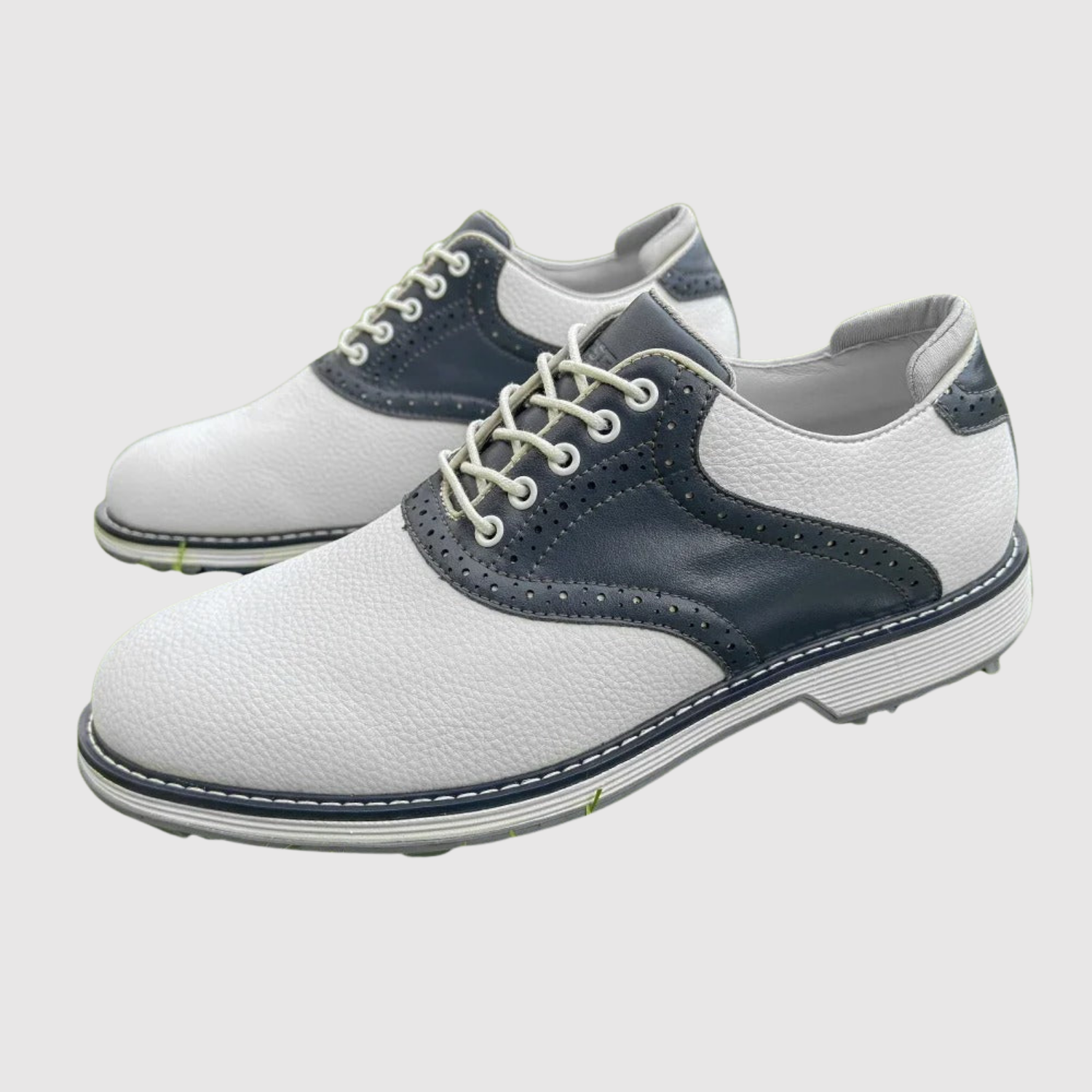 Tyto golfové boty kombinují klasický kožený design s moderní funkčností. Protiskluzová podrážka zajišťuje optimální grip na hřišti, zatímco polstrovaná stélka garantuje komfort po celý den. Perfektní volba pro golfisty, kteří hledají styl a výkon.