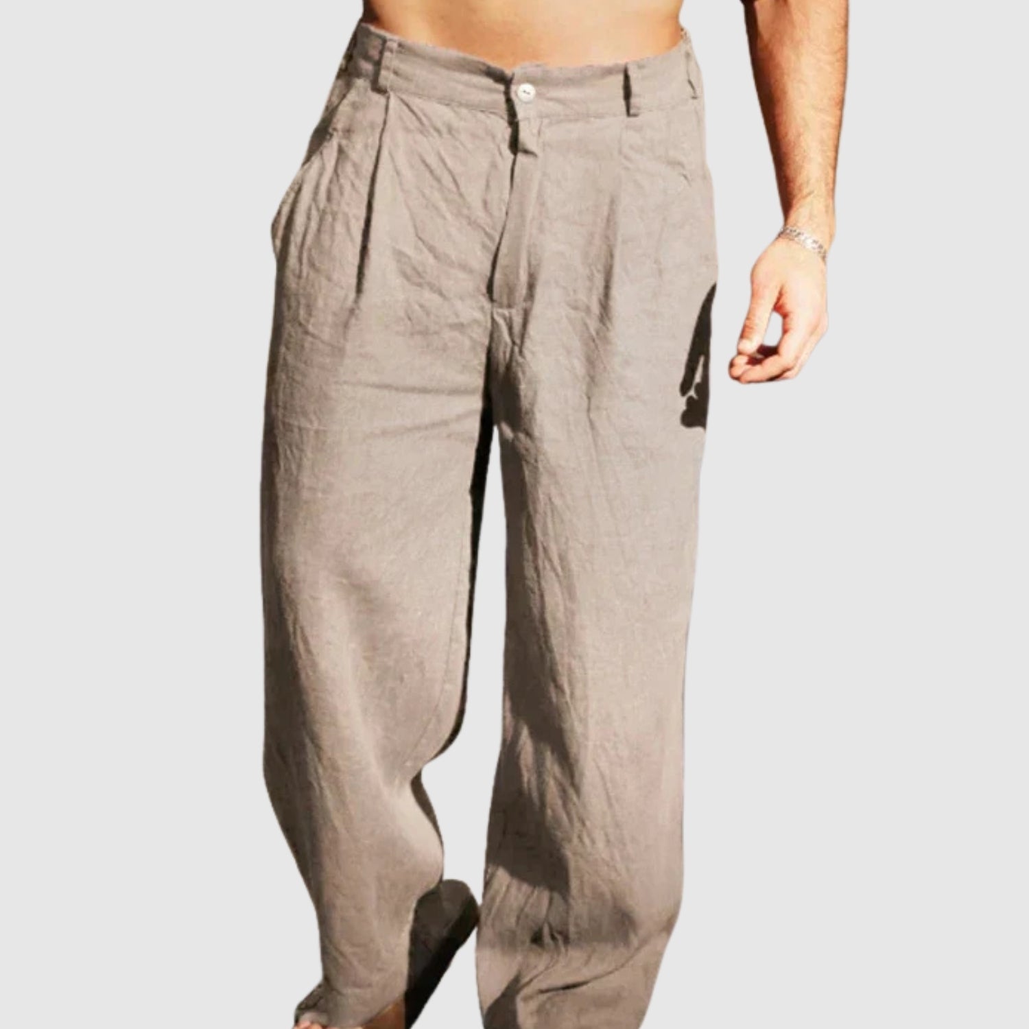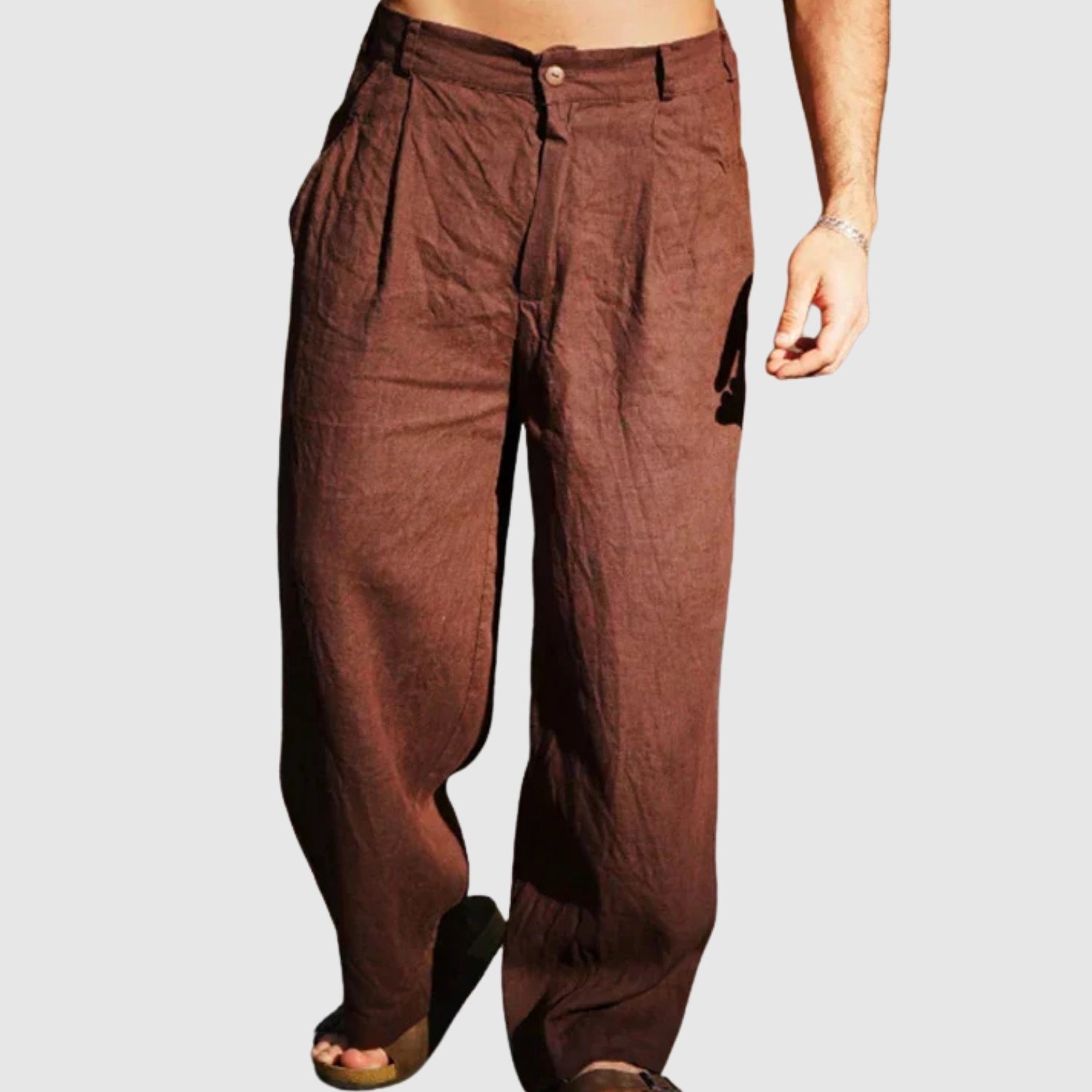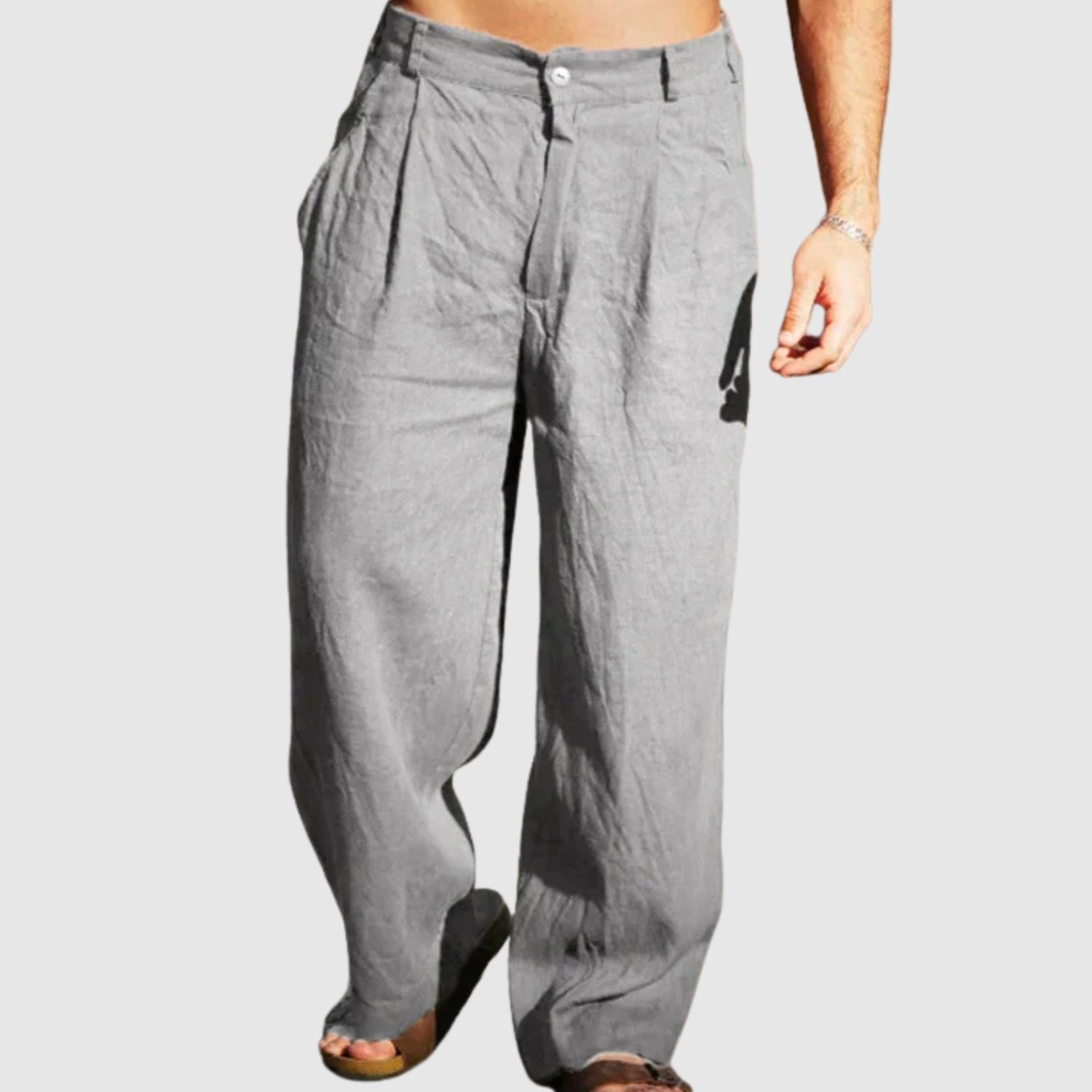 Leo – Letní lněné kalhoty s širokým nohavicím