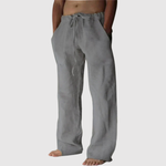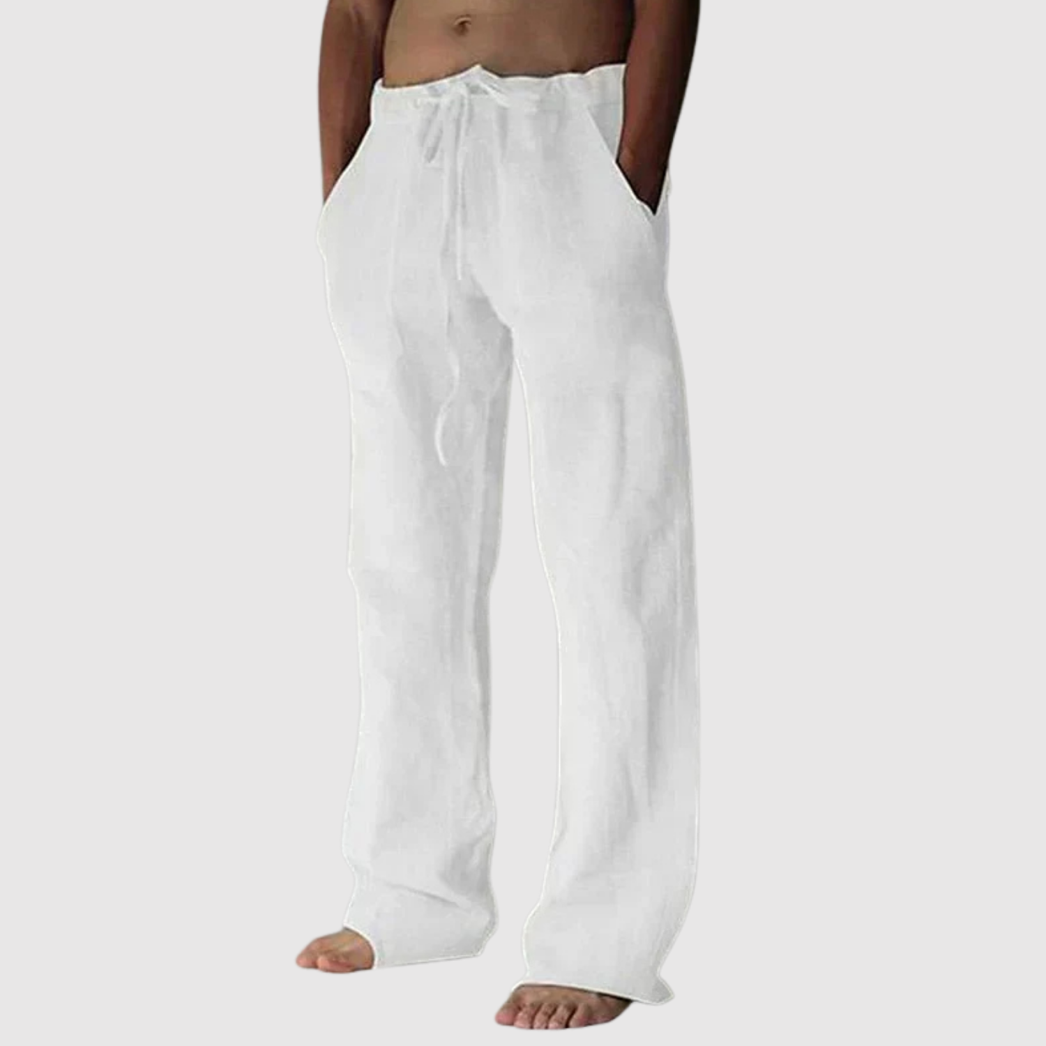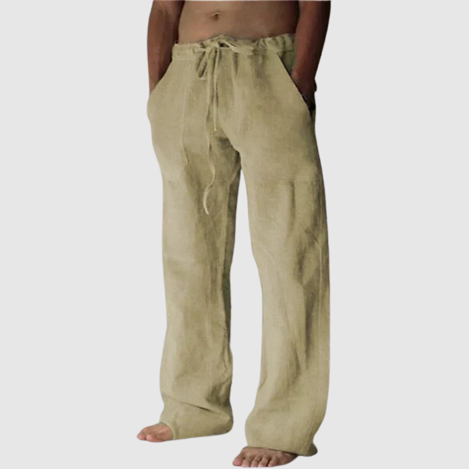 Tyto lněné kalhoty jsou lehké, pohodlné a univerzální. Přírodní materiál zajišťuje prodyšnost a volný střih je činí ideálními jak pro každodenní nošení, tak pro prázdninovou atmosféru.