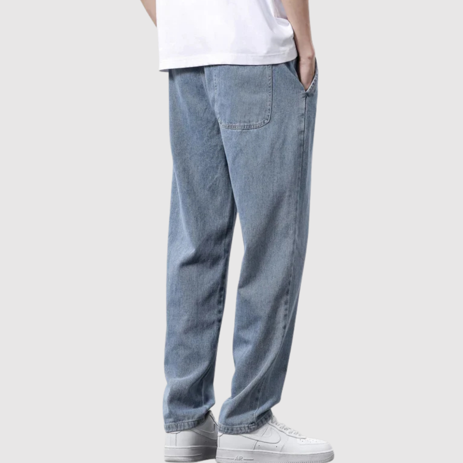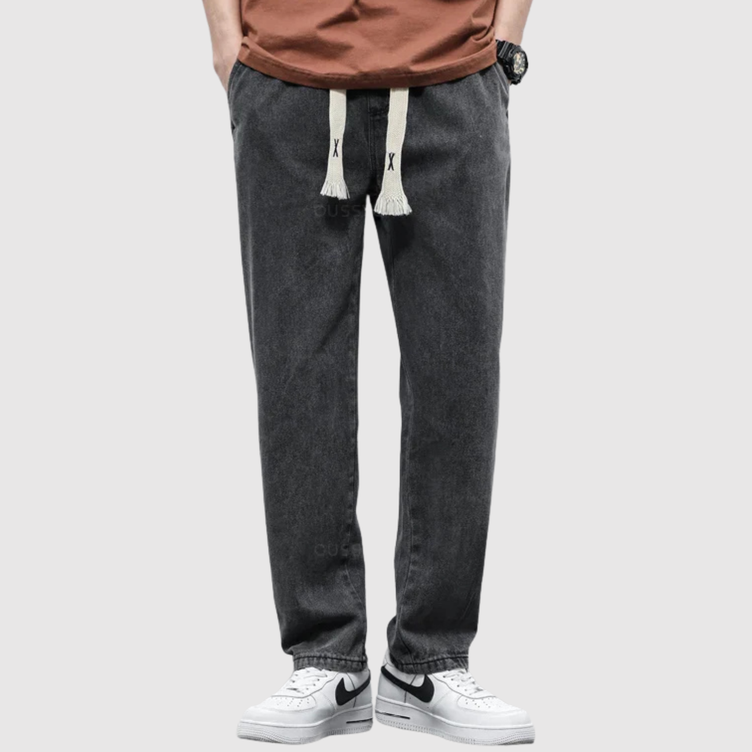 Tyto snadno pratelné džíny kombinují street style s pohodlným střihem. Elastický pás s kontrastní šňůrkou dodává ležérní vzhled, ideální pro každodenní nošení a neformální outfity.