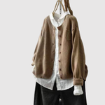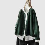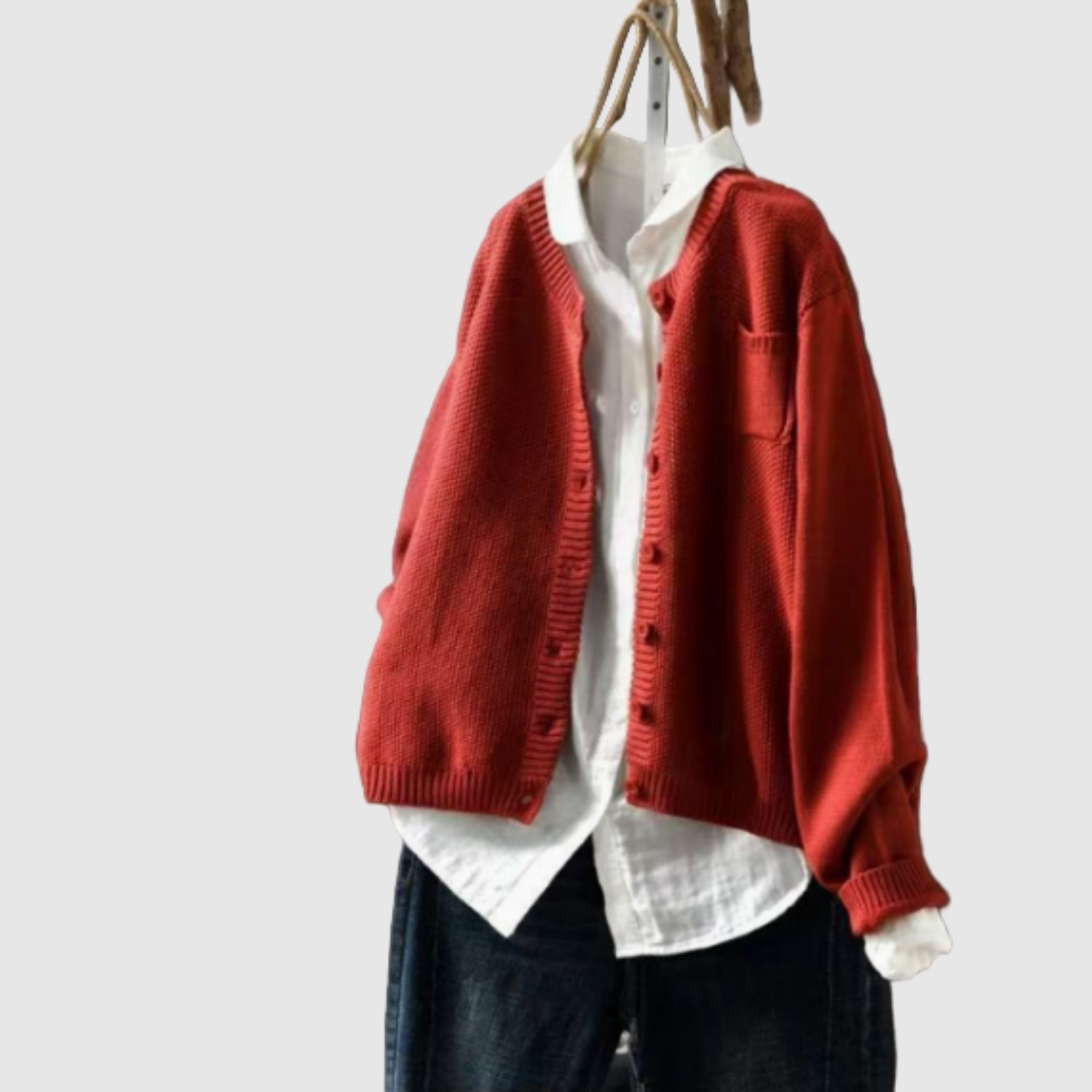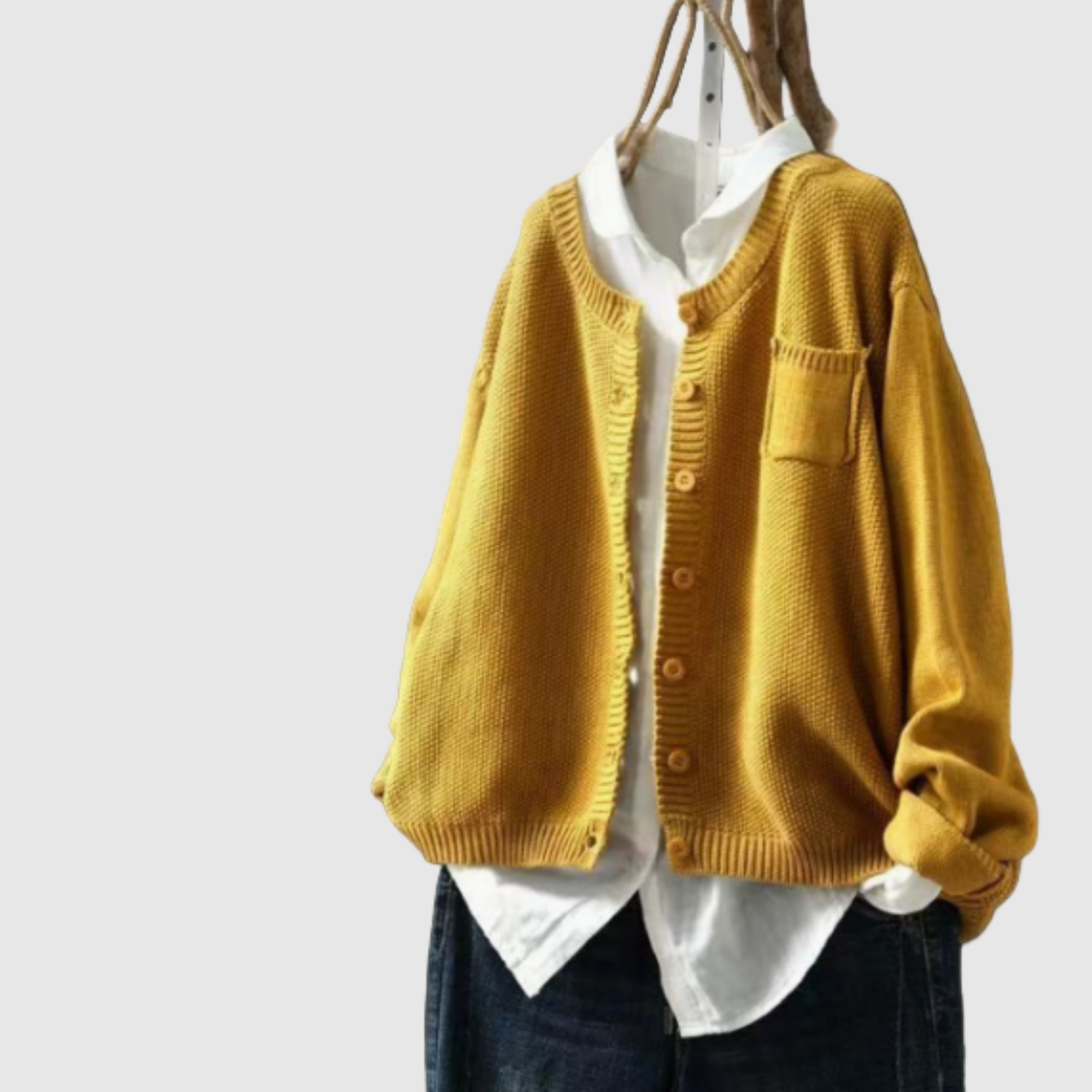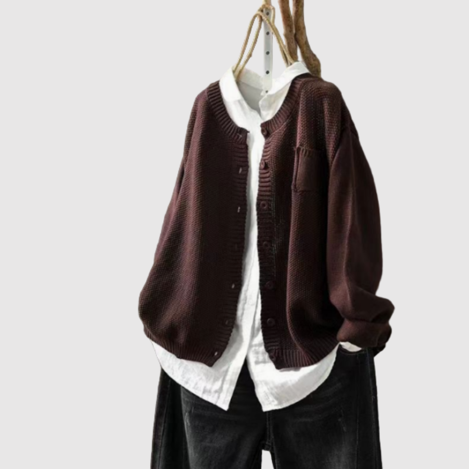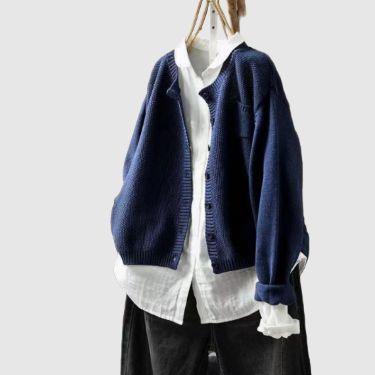 Nadčasový kardigan, který kombinuje pohodlí a jednoduchost. Vyroben z měkké bavlněné směsi, ideální pro vrstvení po celý rok. S klasickými knoflíky a volným střihem je to nezbytný kousek v šatníku každého.