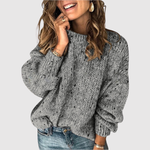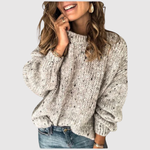 Tento objemečný svetr nabízí uvolněný a moderní vzhled, ideální pro chladné dny. Měkká a silná pletenina zajišťuje komfort po celý den, zatímco jeho design usnadňuje stylizaci s džíny a sukněmi.