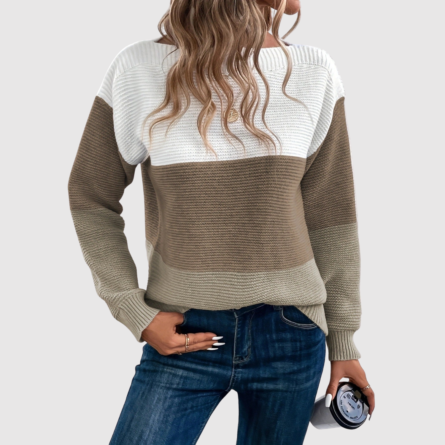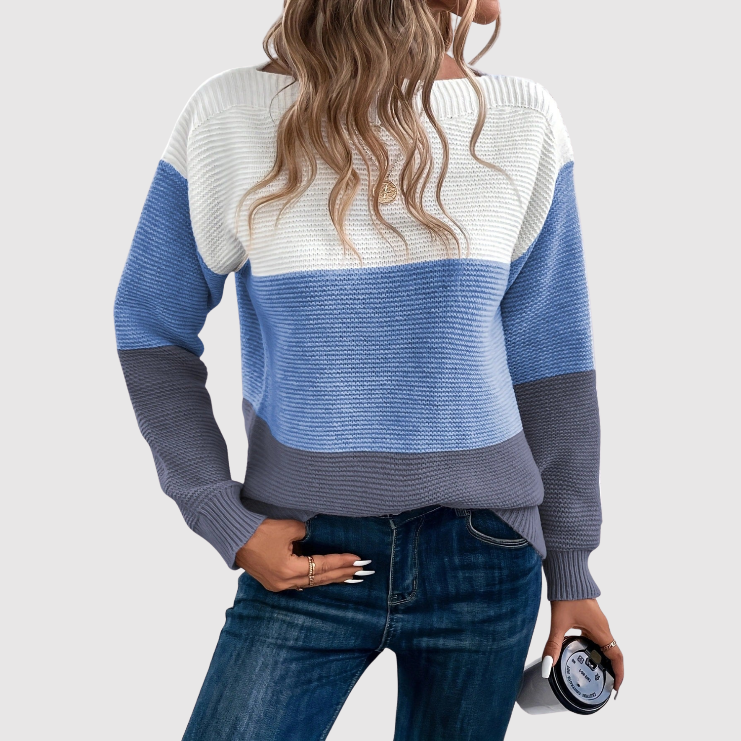Tento svetr je navržen s širokými barevnými bloky, které vytvářejí stylový a svěží vzhled. Měkká kvalita zajišťuje vysokou úroveň pohodlí, zatímco volný střih ho činí ideálním jak pro každodenní nošení, tak pro útulné chvíle.