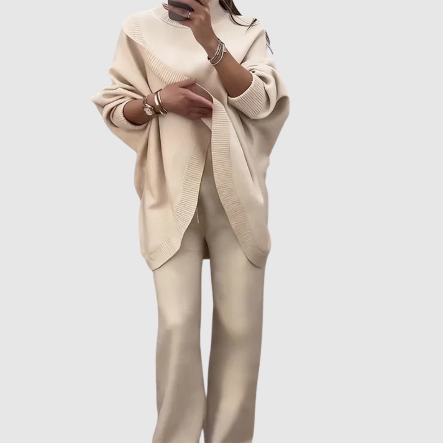 Měkký, pohodlný a elegantní set, který objímá tělo a zajišťuje dokonalý vzhled do kanceláře, na procházku nebo na setkání venku. Střih krásně padne, aniž by byl těsný, a moderní tóny dodávají prémiový pocit.