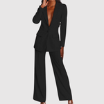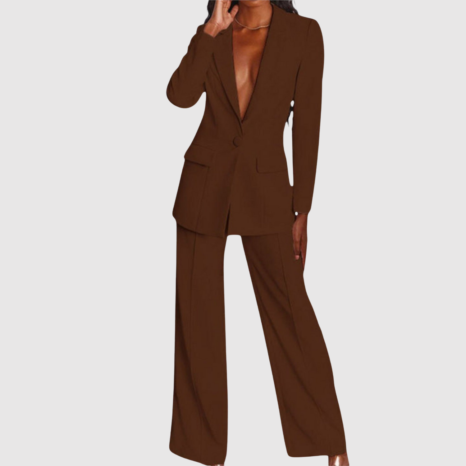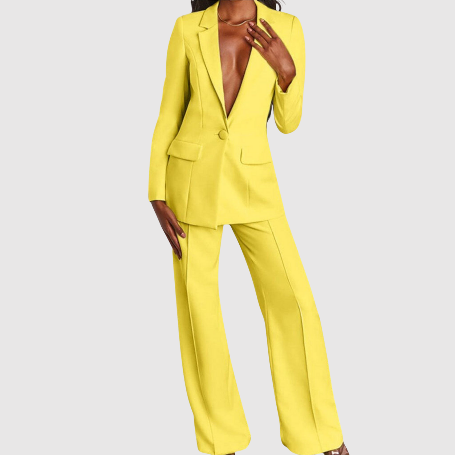 Tento overal kombinuje silný, moderní design s ženskou elegancí. Jasné barvy a čisté linie z něj činí ideální volbu jak pro práci, tak pro události a večerní nošení. Sada, která vyzařuje sebevědomí a rafinovanost.