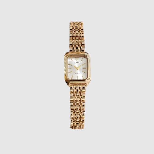 Tyto hodinky kombinují vytříbený design s moderním leskem. Obdélníkový ciferník a kovový řemínek dodávají pocit luxusu a sebevědomí – dokonalý doplněk pro každý outfit.