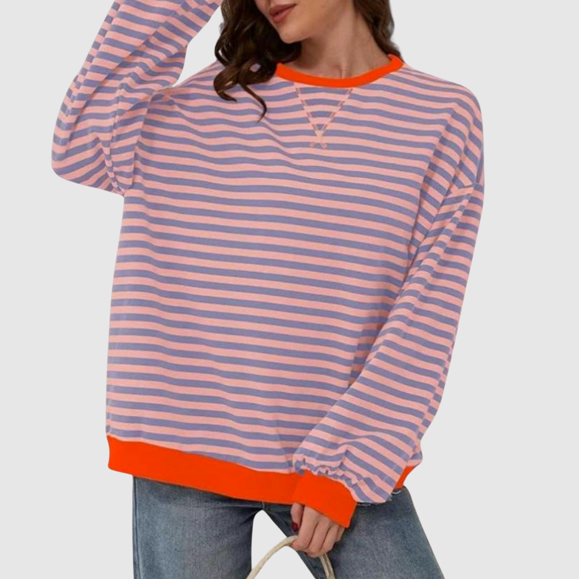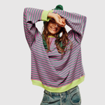 Tento pruhovaný svetr dodává hravý a moderní vzhled, ideální pro každodenní nošení. Měkká kvalita zajišťuje komfort, zatímco svěží kontrastní barvy dodávají energii každému outfitu.
