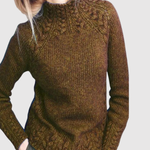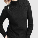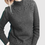 Tento svetr kombinuje klasický vysoký límec s jemným vzorem v ramenní části. Hustá pletenina a lichotivý tvar jej činí ideálním pro práci i volný čas – s velkým komfortem a stylem.