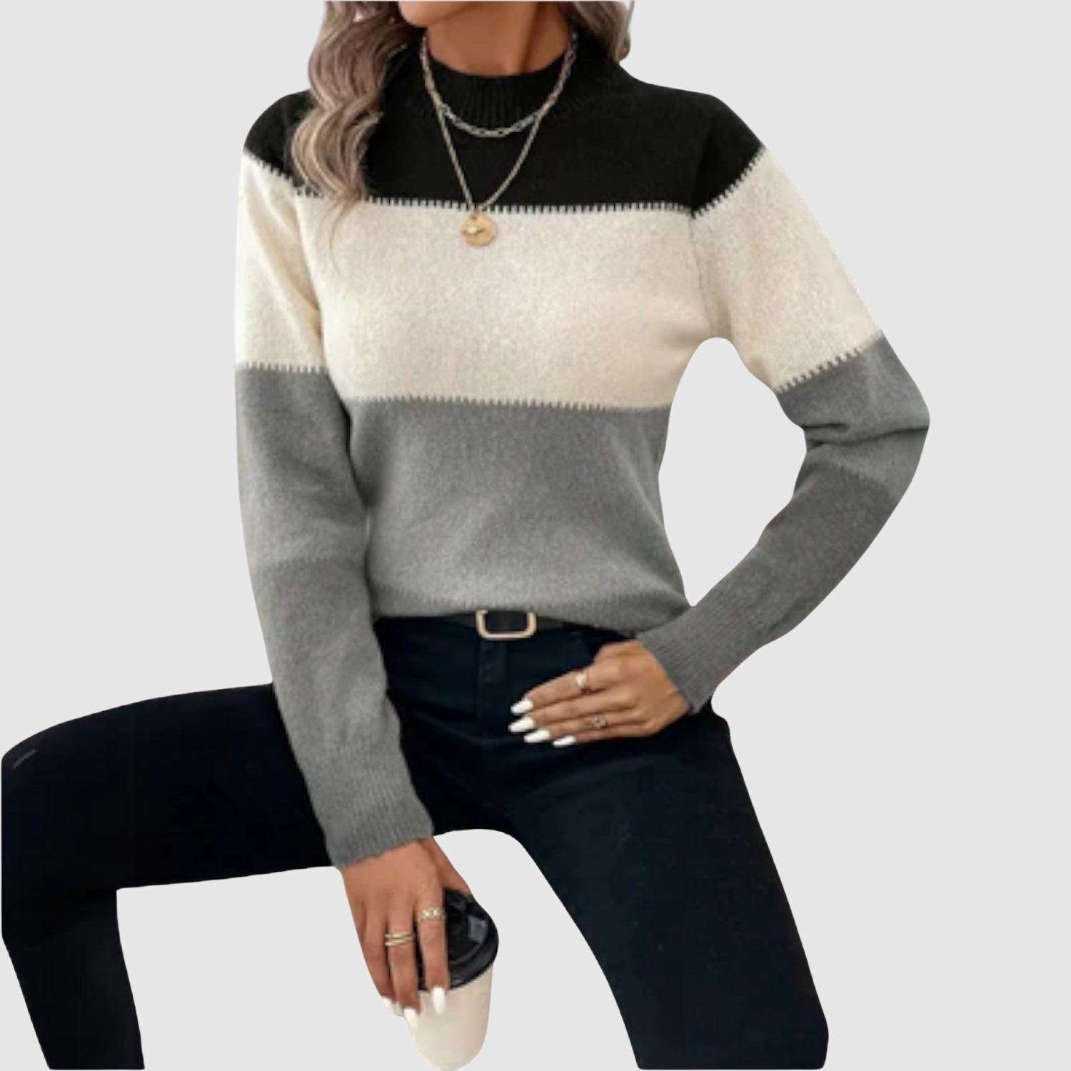 Tento svetr kombinuje jednoduchost a pohodlí s moderním tříbarevným designem. Měkká kvalita zajišťuje pohodlné nošení, zatímco hra barev dodává stylový a výrazný vzhled. Perfektní pro každodenní nošení a neformální stylizace.