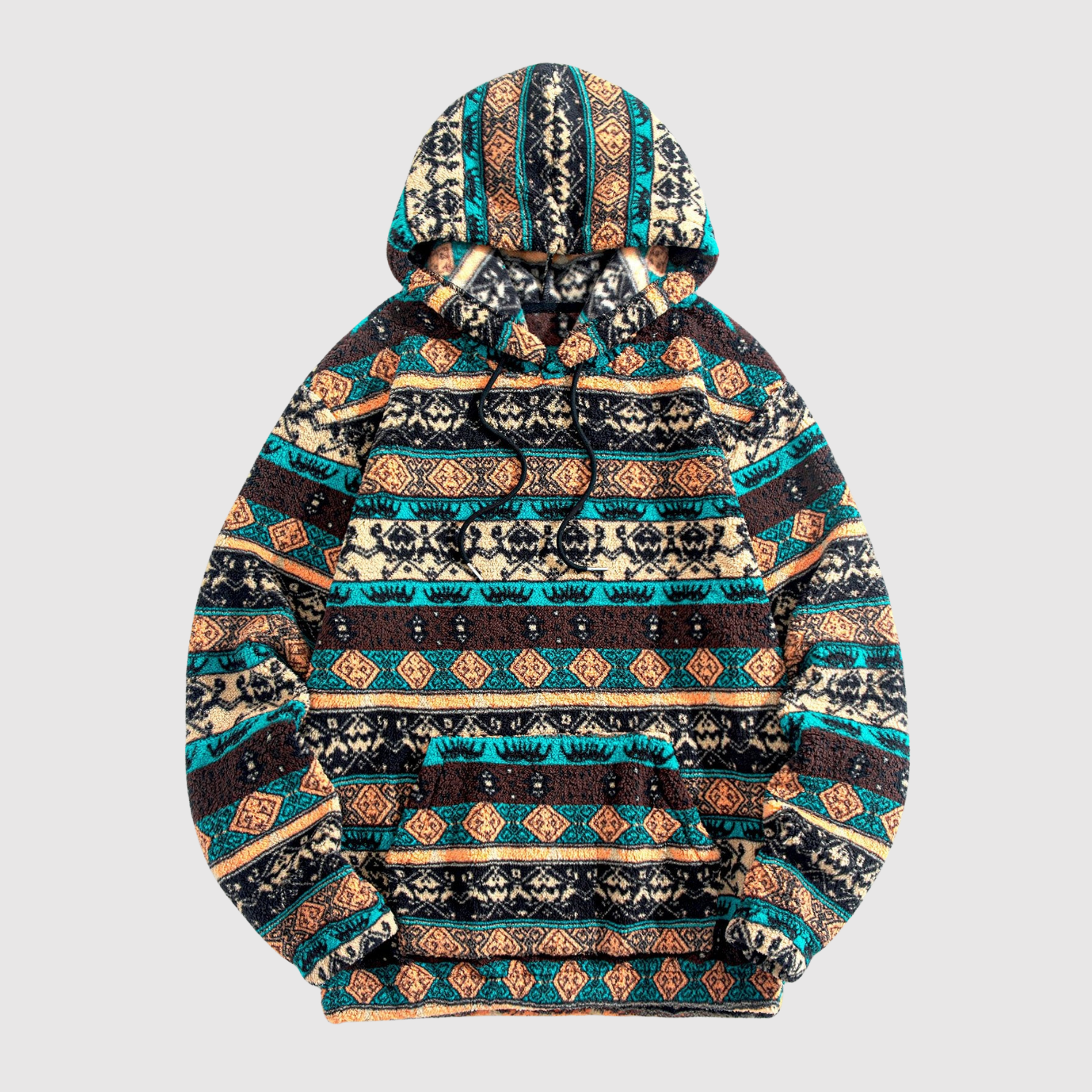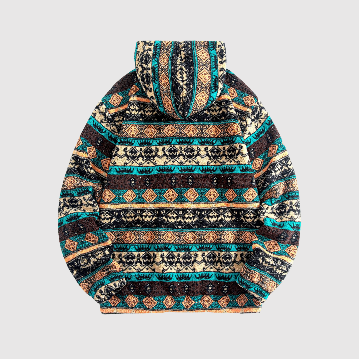 Charakteristická mikina s etnickými motivy, která kombinuje komfort s uměleckým vyjádřením. Perfektní pro ty, kteří chtějí ležérní vzhled s osobností a stylem.