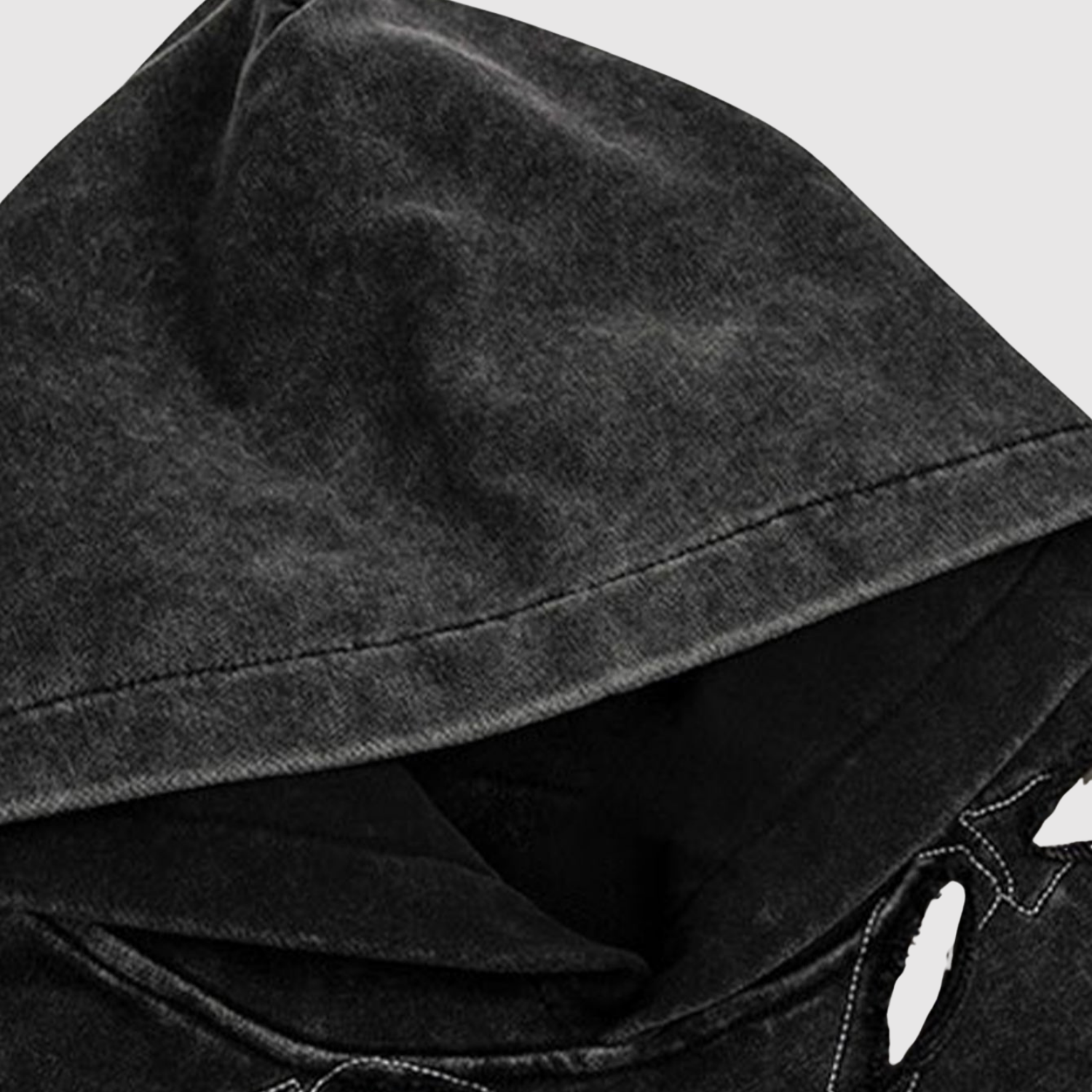 Výrazná mikina s charakteristickými výřezovými detaily na zádech, která dodává ostrý a jedinečný vzhled. Volný střih v kombinaci s měkkou bavlněnou směsí ji činí pohodlnou i stylovou. Perfektní pro streetwear a každodenní nošení.