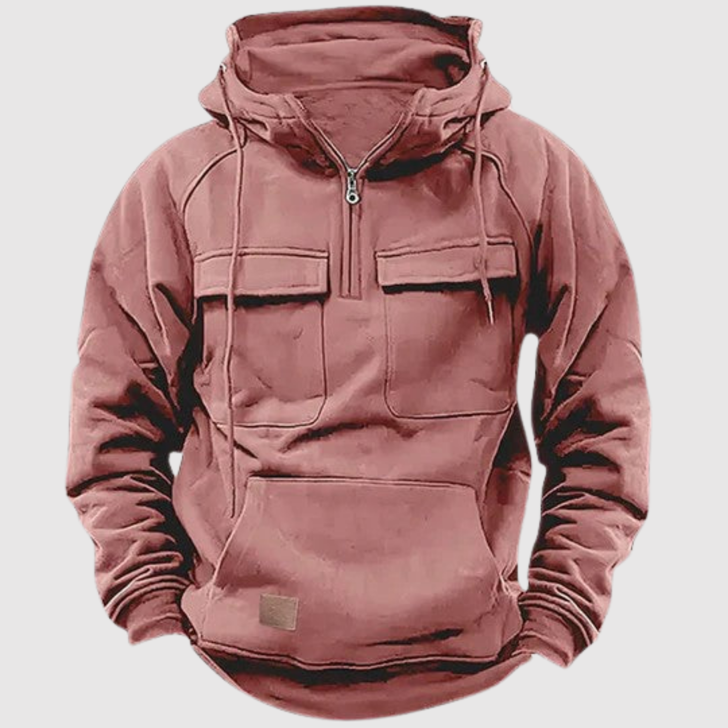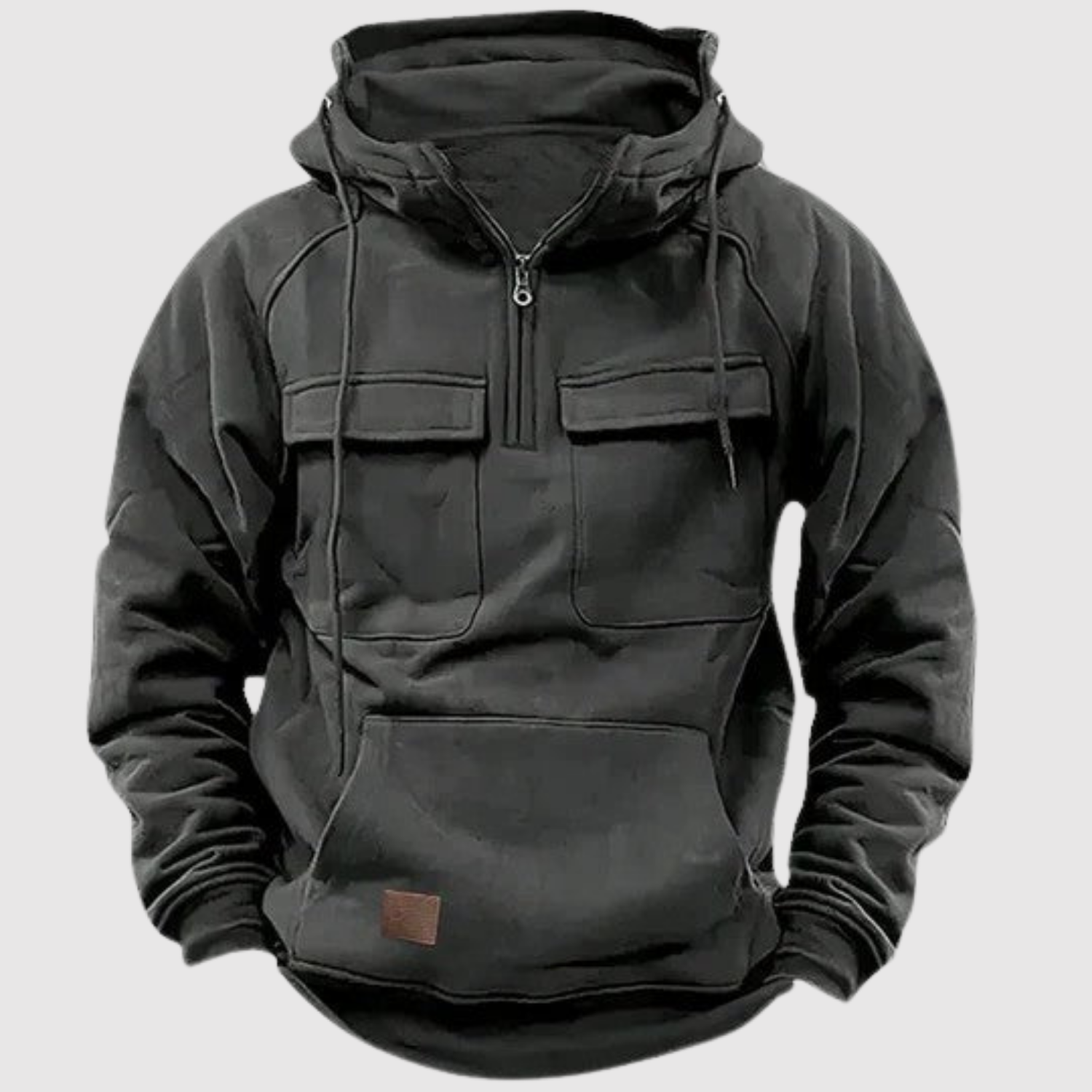Odolná mikina navržená pro styl a funkčnost. Inspirovaná vojenským designem s praktickými předními kapsami a polo zipem, dodává drsný a mužný vzhled. Materiál je odolný a pohodlný, ideální pro dobrodružství v přírodě a každodenní nošení.