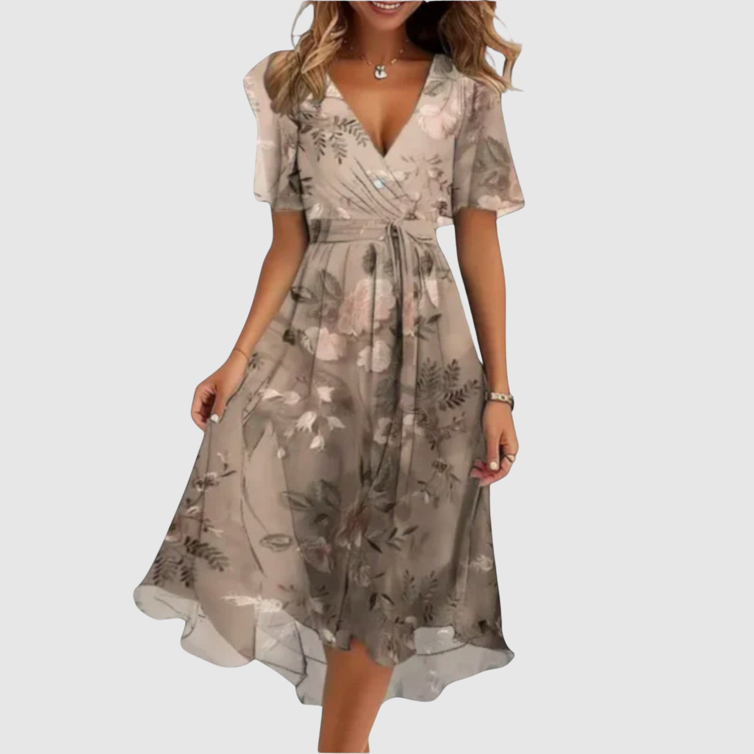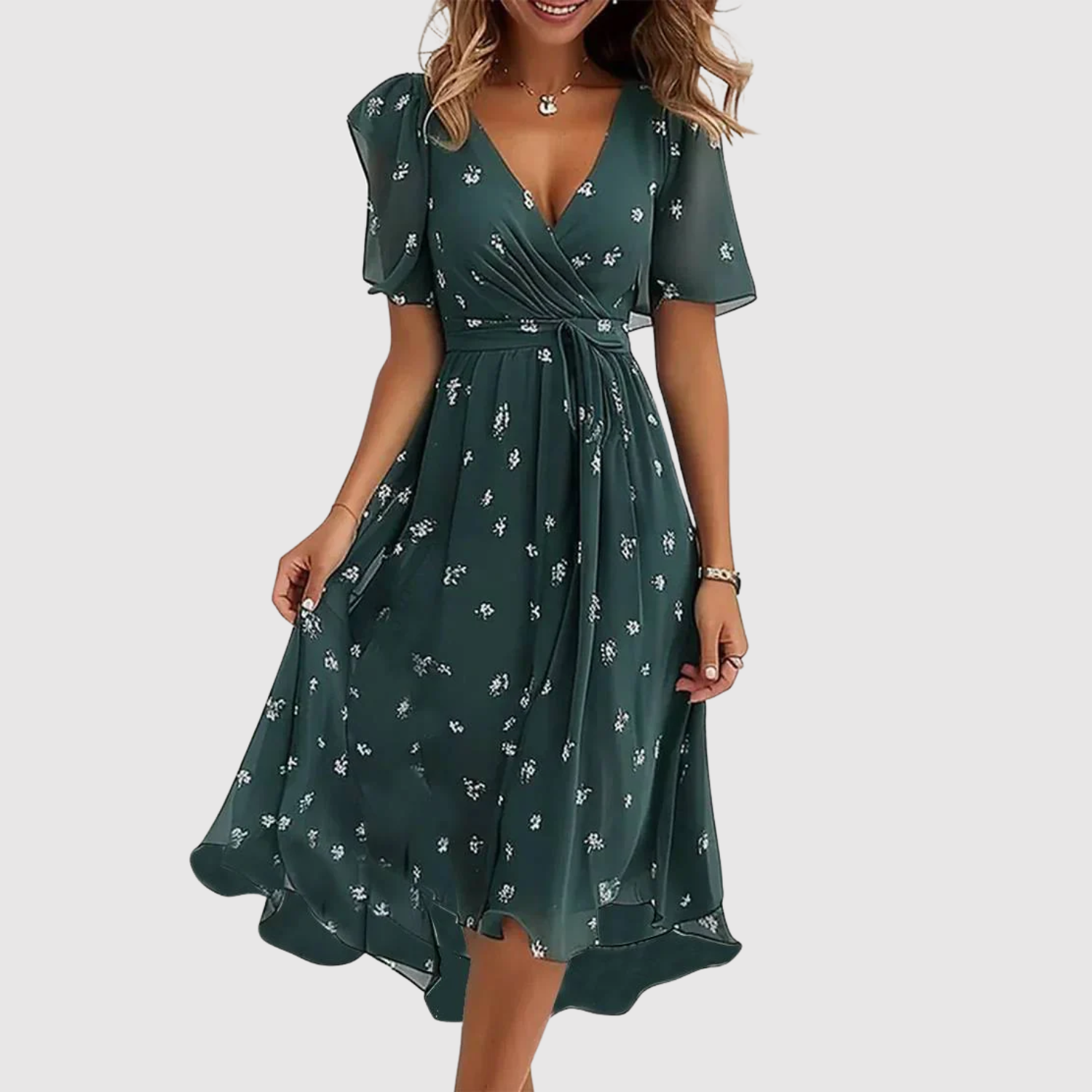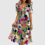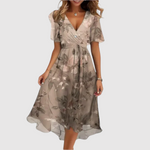 Tyto dámské šaty s V-výstřihem kombinují ženskost, svěžest a nadčasový design, který zdůrazňuje postavu a zajišťuje plnou svobodu pohybu. Lehký materiál a křížové šití je činí nezbytnými pro ty, kteří hledají bez námahy styl.
