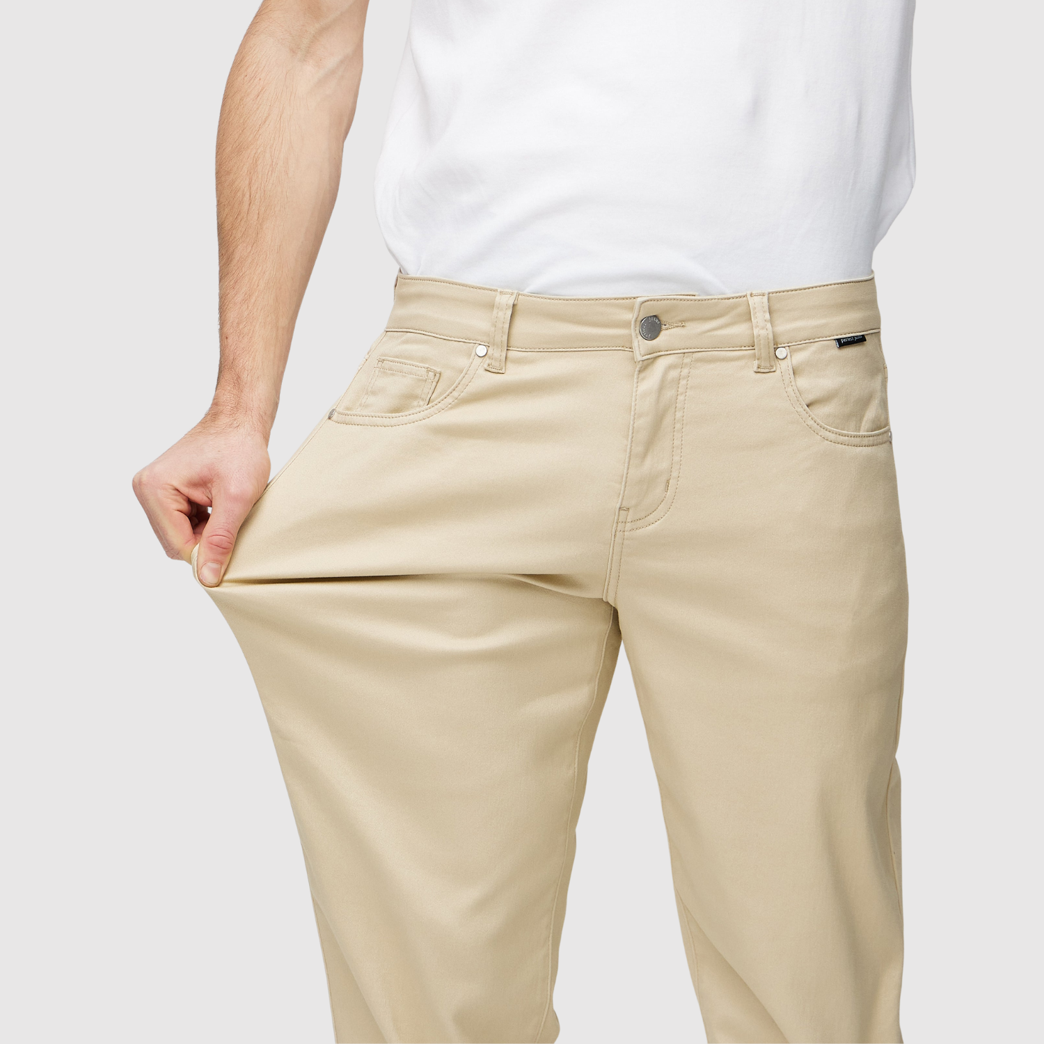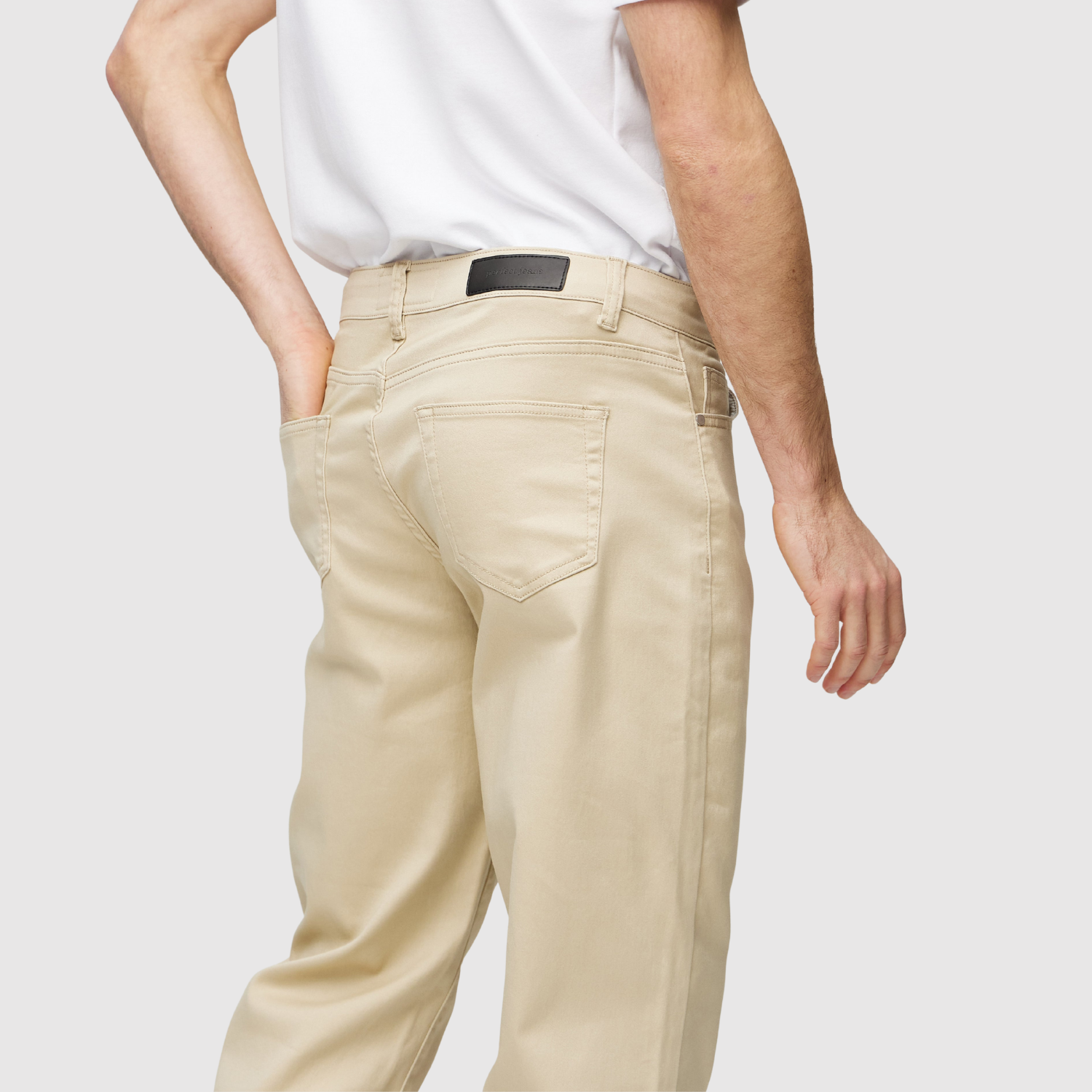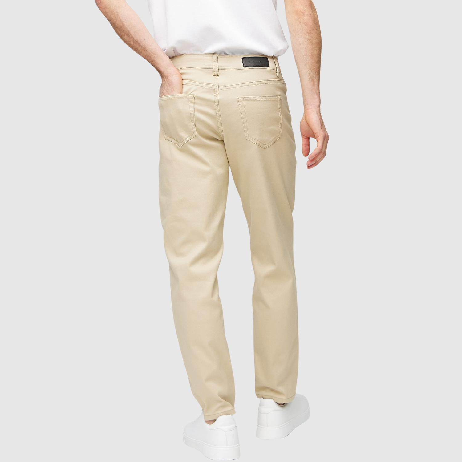 Tyto béžové džíny s normálním střihem jsou svěží alternativou klasického denimu. Neutrální barva je činí snadno kombinovatelnými s košilemi a tričky, zatímco elastický materiál zajišťuje pohodlí a svobodu pohybu po celý den.