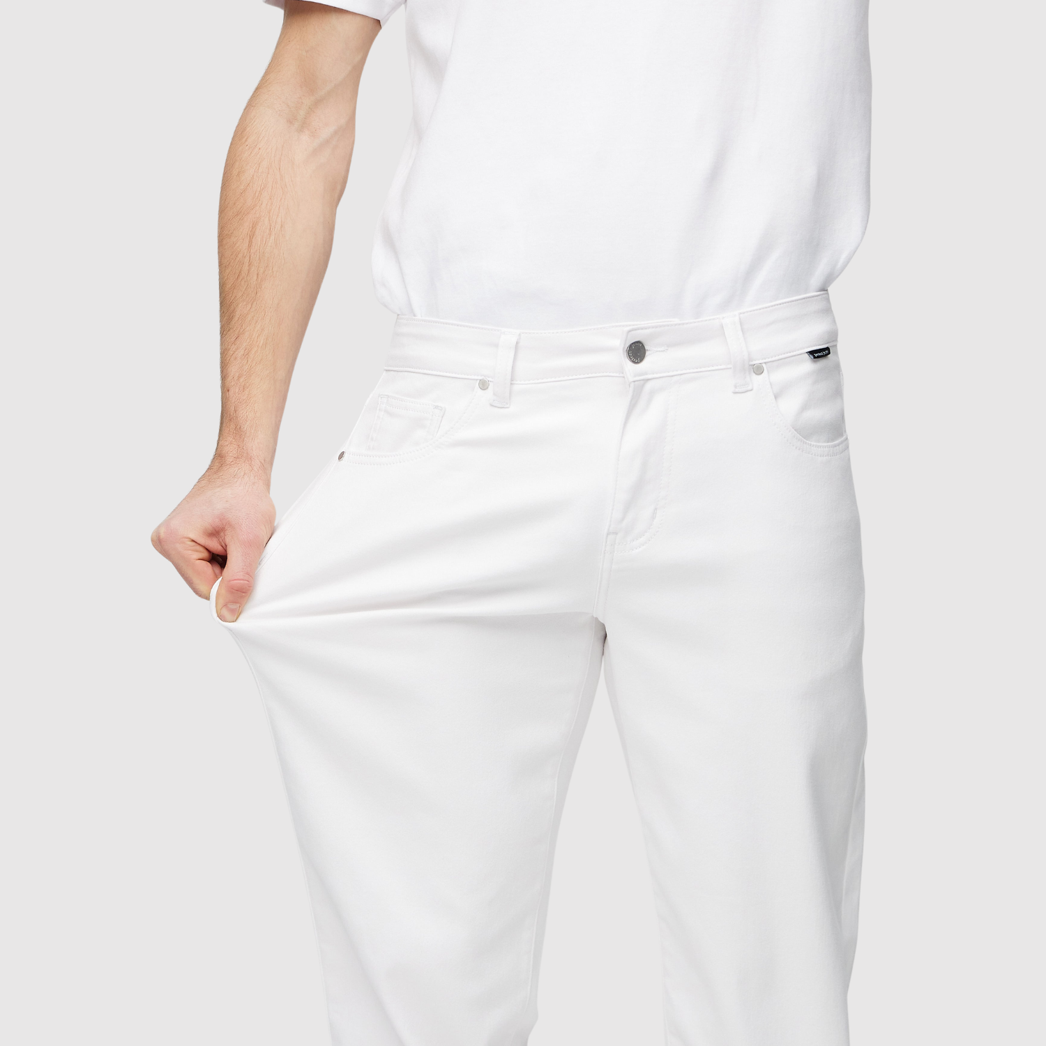 Tyto džíny s normálním střihem v bílé nabízejí čistý a elegantní vzhled, který lze kombinovat jak pro každodenní, tak pro slavnostní příležitosti. Speciálně tkaná bavlněná látka je pohodlná, elastická a zajišťuje komfort, aniž by byla průhledná.