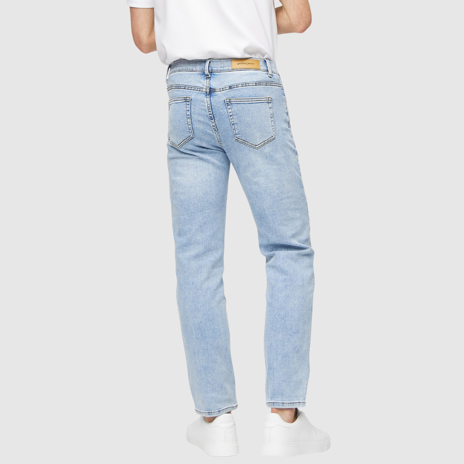 Tyto světle modré džíny s normálním siluetem nabízejí neformální a moderní vzhled. Vyrobeny z elastického denimu, který spojuje klasický styl s pohodlím a volností pohybu po celý den. Perfektní pro každodenní nošení a uvolněné outfity.