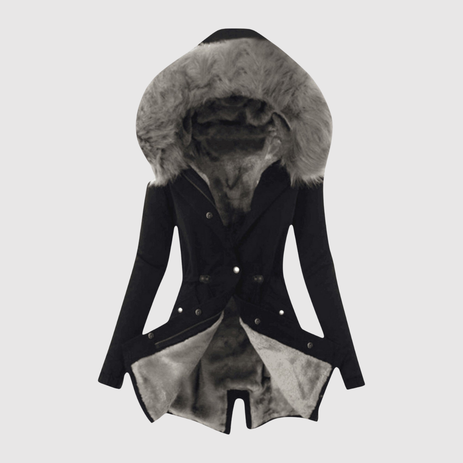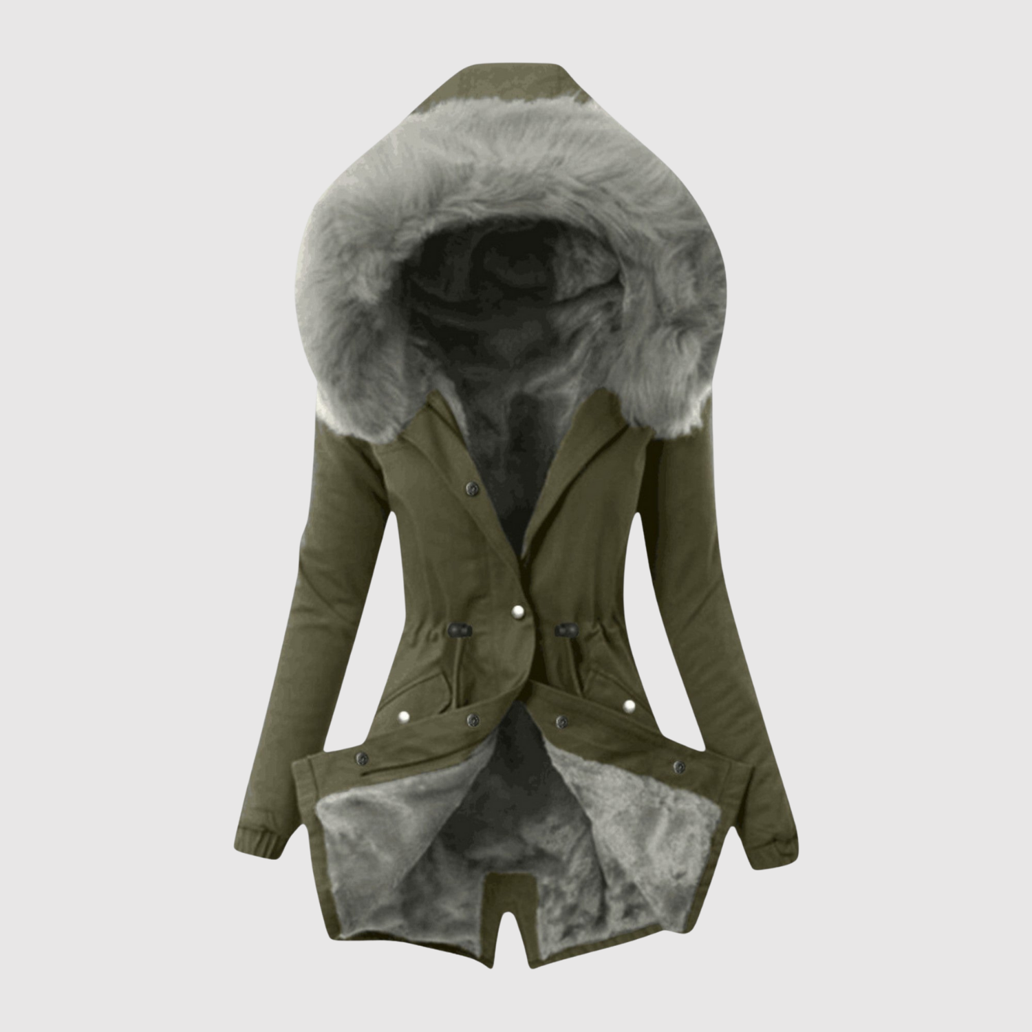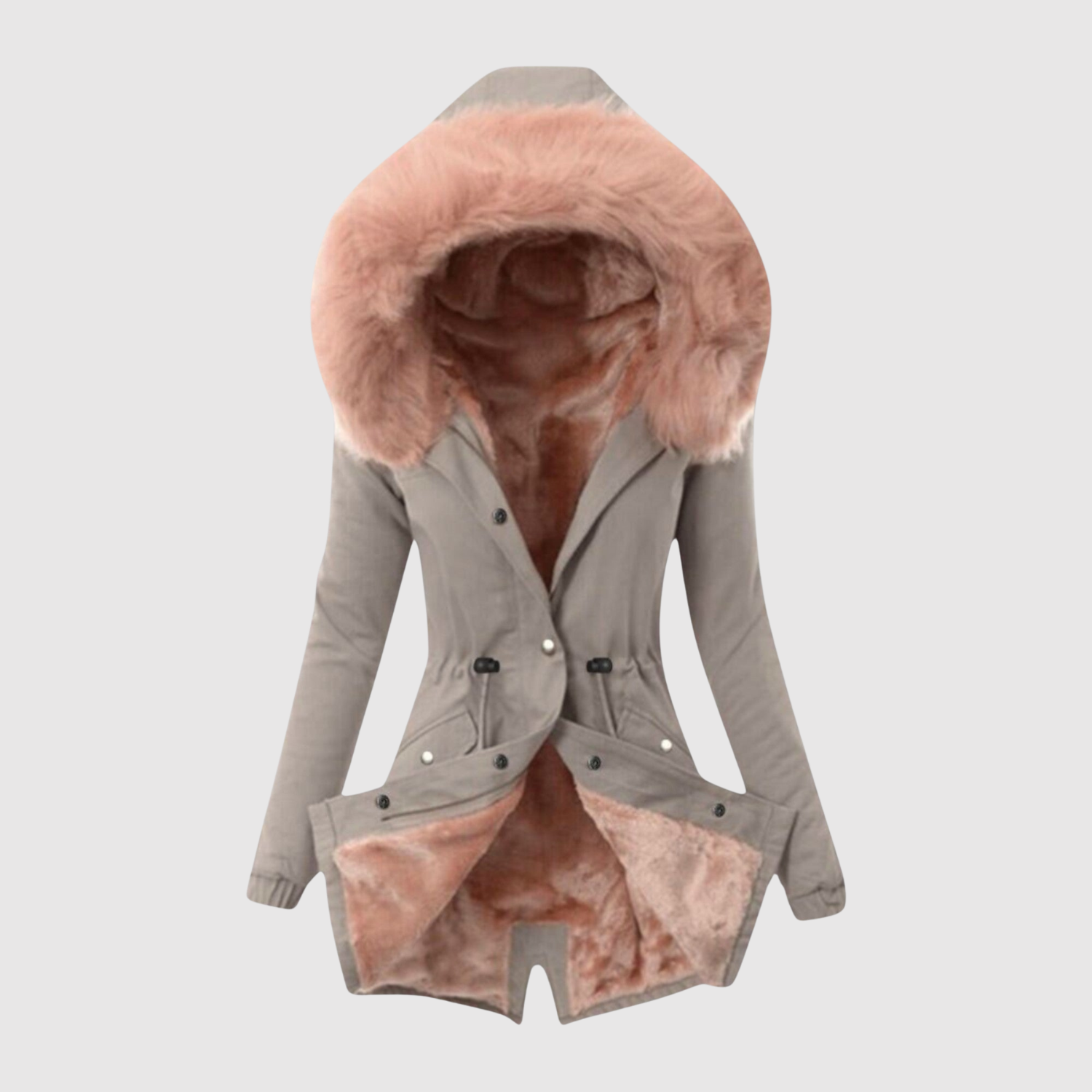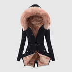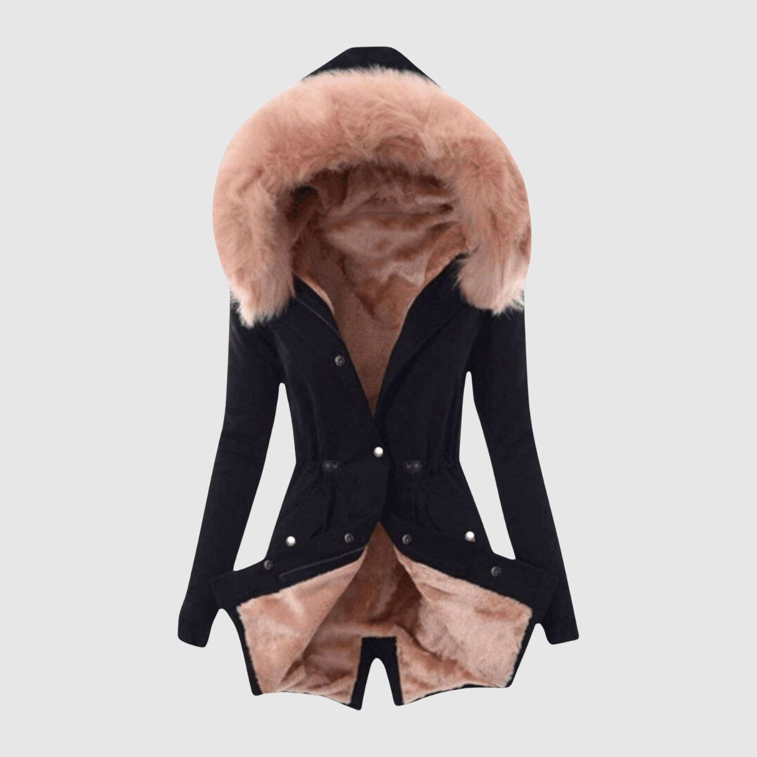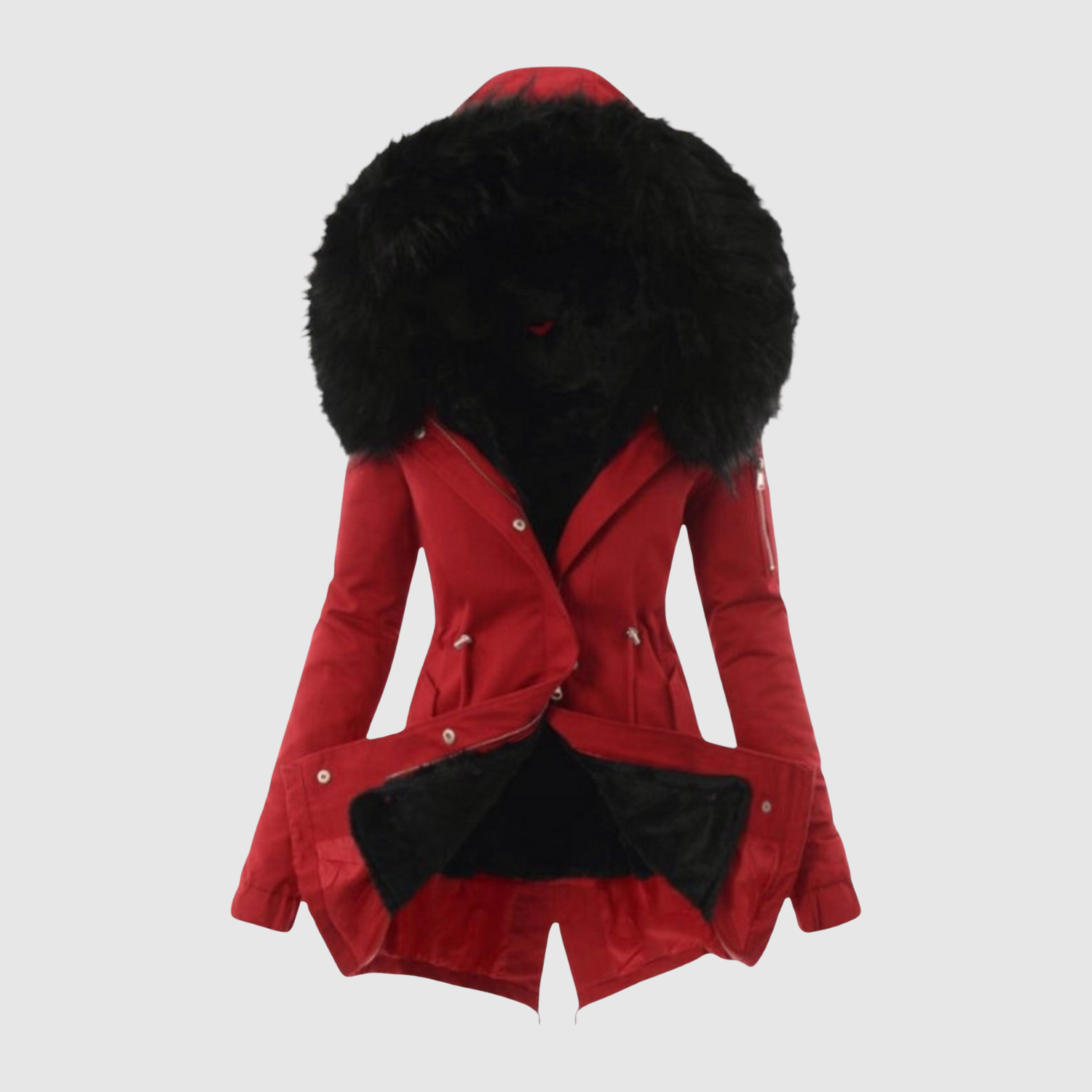 Tato parka kombinuje módu a funkčnost. Asymetrický střih, zvýrazněný pas a měkká umělá kůže dodávají moderní a ženský vzhled, ideální pro chladné dny ve městě.
