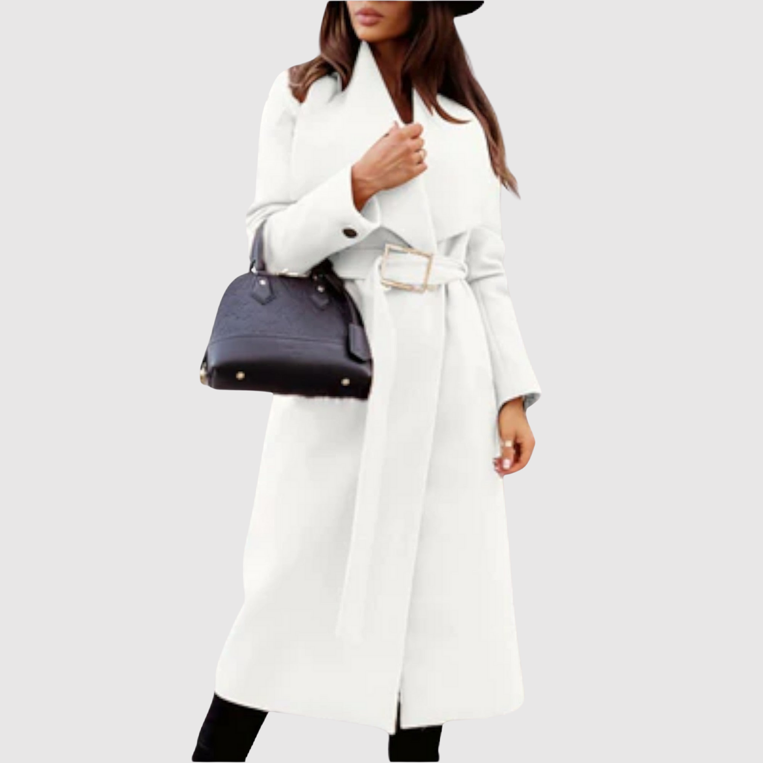 Tento kabát kombinuje klasický siluetu s moderními detaily. Široký rever, pásek v pase a čisté linie z něj dělají jistou volbu pro stylový zimní šatník.