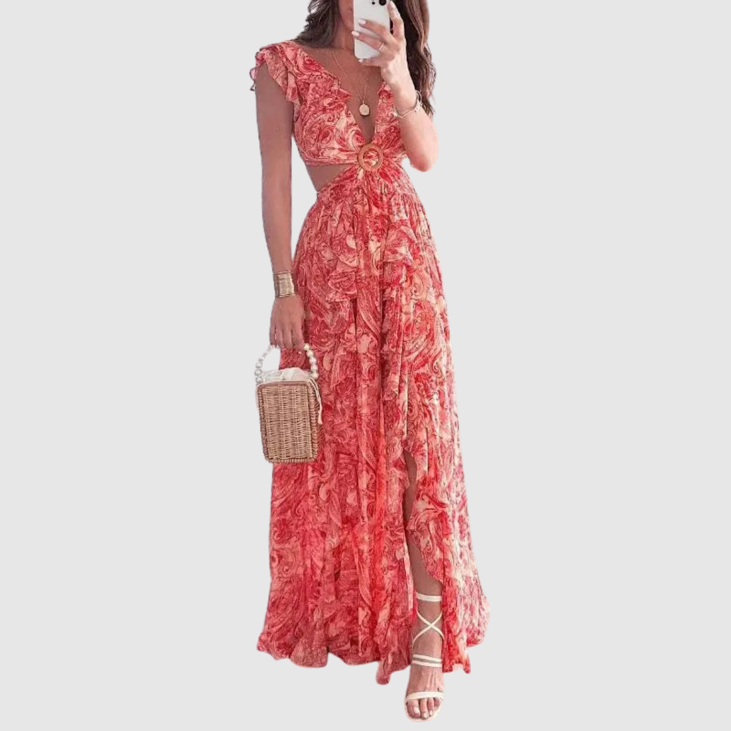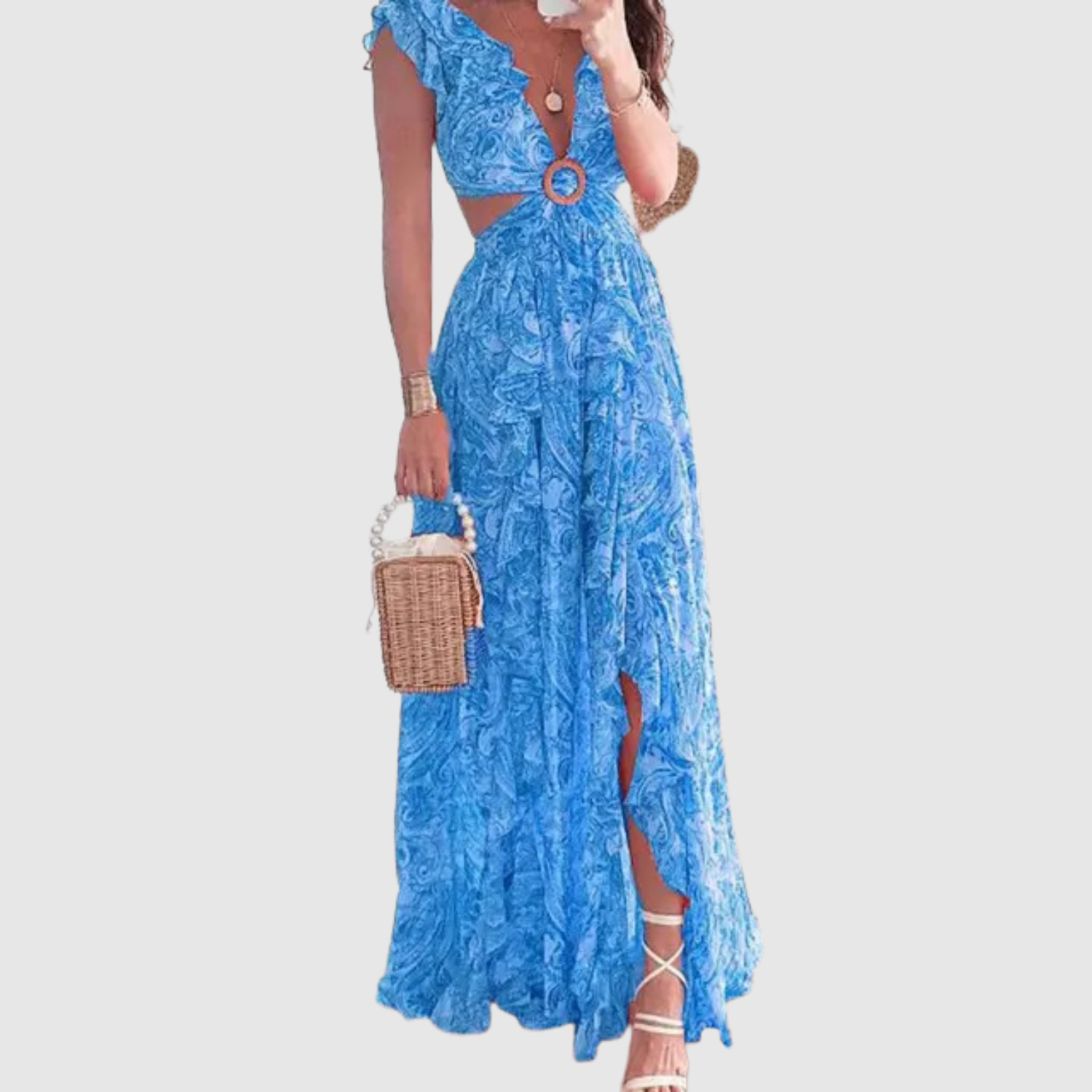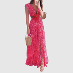 Tyto maxi šaty jsou navrženy s krásnými květinovými potisky a lehkým splývajícím materiálem, který dodává ženský a romantický vzhled. Perfektní pro letní večírky, plážové výlety nebo večery venku.