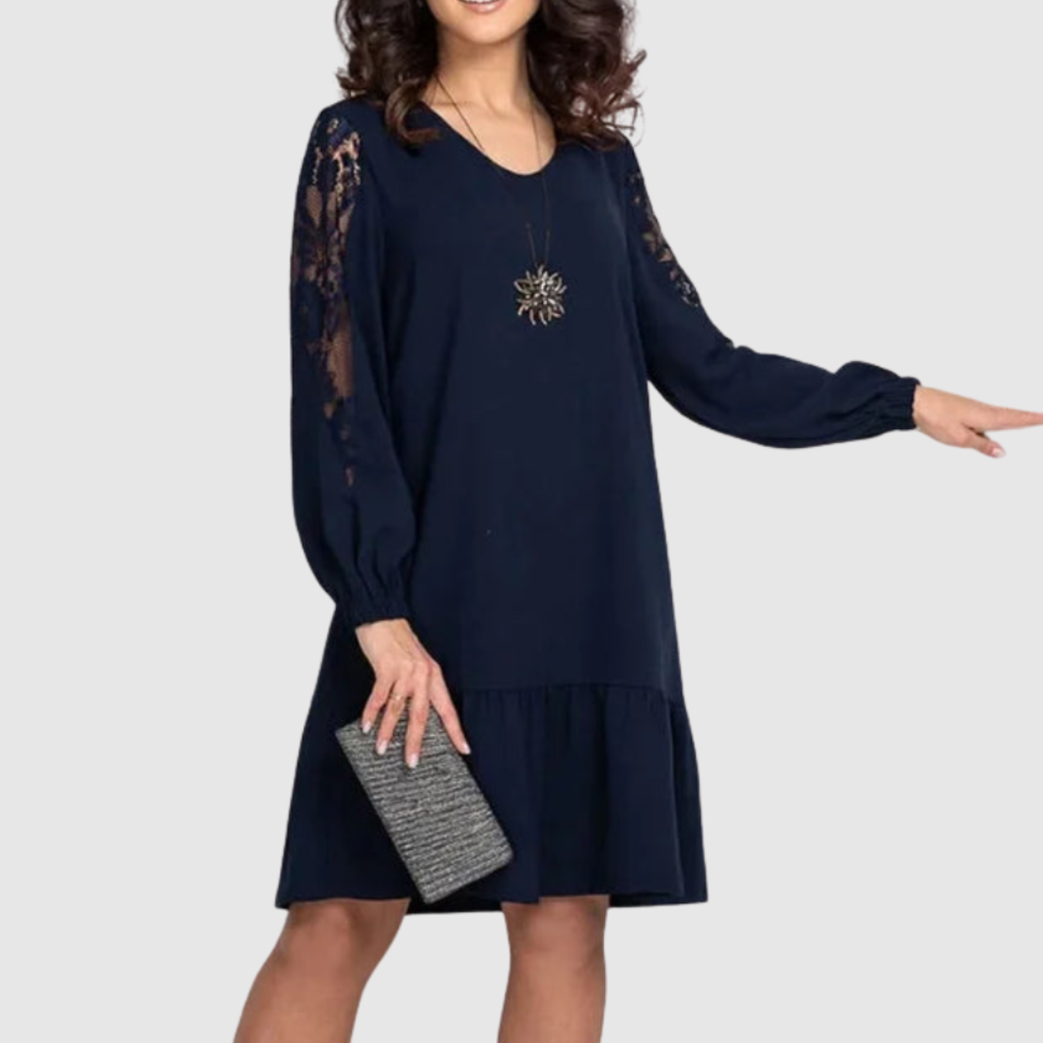 Tyto šaty kombinují lehký střih a elegantní krajkové rukávy, které dodávají vytříbený styl. Jsou vhodné na akce, formální příležitosti nebo večerní vycházky. Působí krásně, vypadají moderně a zajišťují pohodlí po celý den.