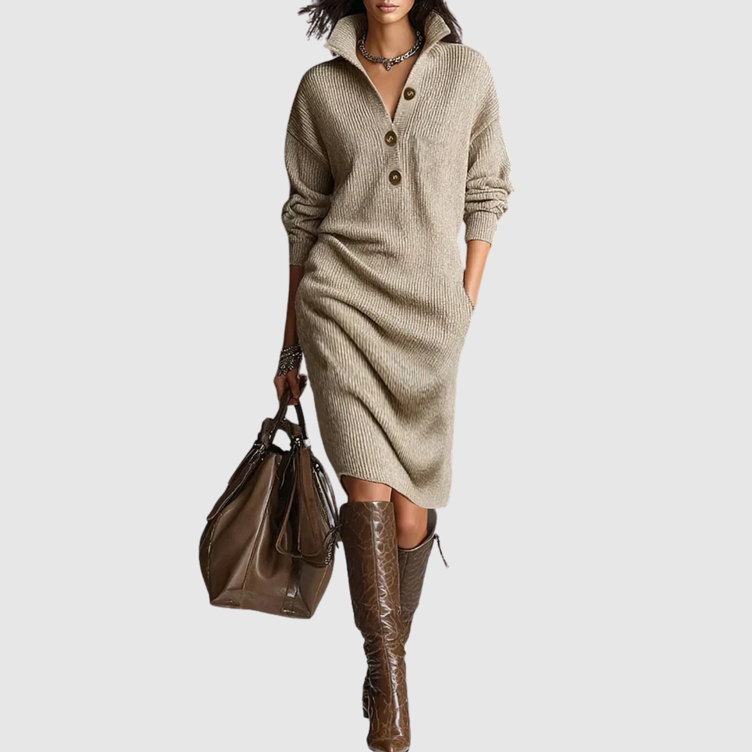 Měkké, teplé a stylové – šaty určené pro moderní podzimní a zimní dny. Zdůrazňují siluetu, aniž by těsnily, a poskytují pohodlí po celý den. Ideální do práce, na každodenní nošení i na schůzky ve městě.