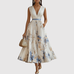 Tyto šaty okouzlují éterickou látkou, krásným květinovým vzorem a rozšířenou spodní částí, která se při každém kroku jemně pohybuje. Perfektní na letní procházky, dovolené a každodenní schůzky. Vypadají romanticky a zdůrazňují přirozenou eleganci.