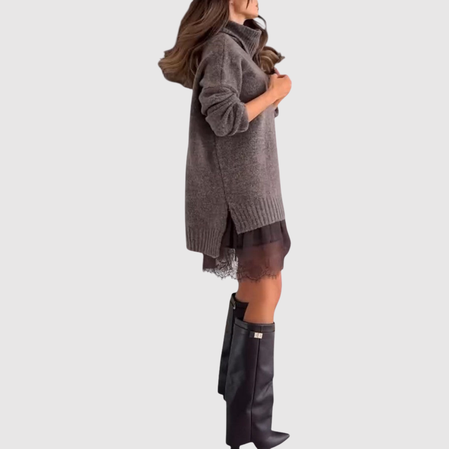 Kombinace svetru a šatů pro všestranný a elegantní vzhled