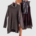 Tento dvoudílný set kombinuje teplý pletený svetr s elegantními šaty a vytváří moderní a vyvážený look. Šaty krásně zdůrazňují siluetu, zatímco svetr dodává uvolněný, ale sofistikovaný vzhled.Ideální volba pro každodenní nošení, podzimní dny a večery ve městě.